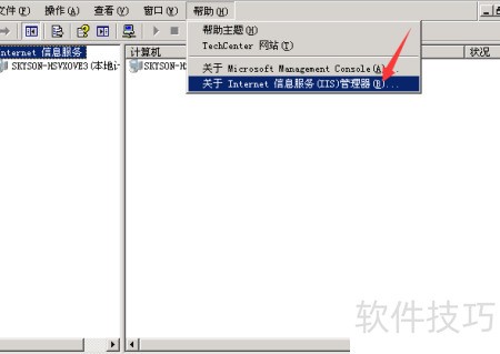 3、 在帮助菜单中查看关于IIS管理器的信息说明