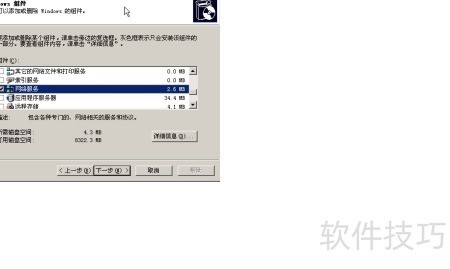 2、 在Windows组件窗口中,点击添加/删除Windows组件,选择网络服务,然后单击详细信息按钮,进入网络服务设置界面。