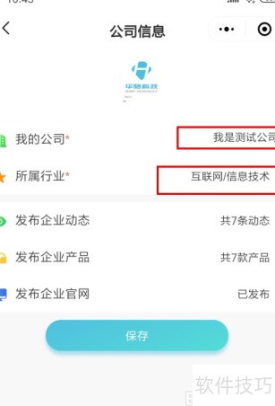 4、 通过CRM小程序进入公司页面,修改名称及所属行业。