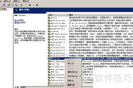 3、 打开服务程序,右键点击服务(本地)中的DNS Client图标。