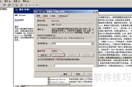 5、 打开DNS Client属性窗口,进入常规选项,点击停止按钮即可。