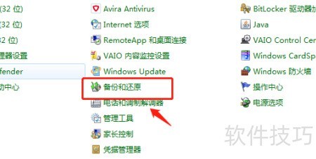 1、 进入控制面板,选择所有项目,打开备份与还原功能。