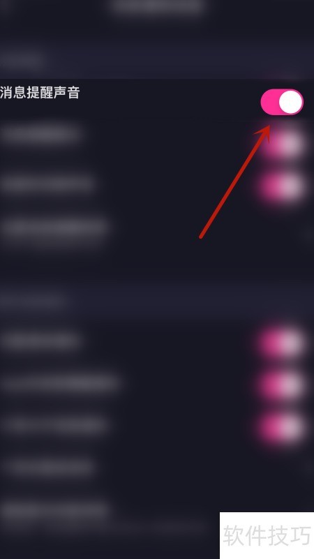 3、 在设置中选择消息提醒声音的启用按钮