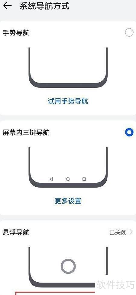 2、 进入系统导航设置,选择屏幕内三键操作方式。