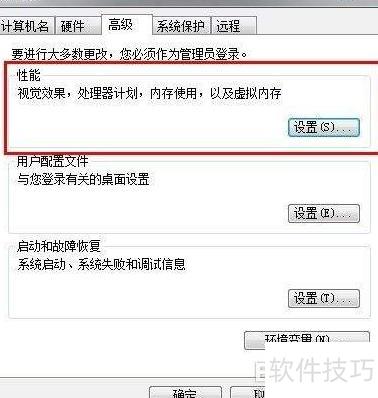 3、 可调节视觉效果、处理器方案及虚拟内存大小等性能选项,点击设置即可进行配置。