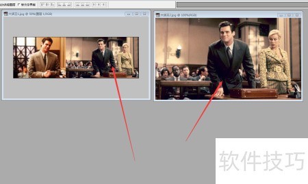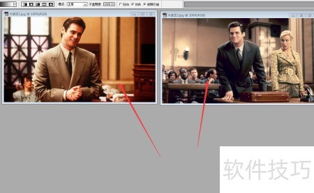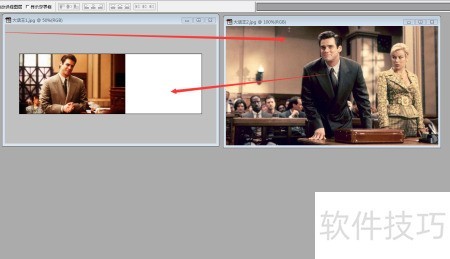 3、 将第一张大话王图片置于新图层,接着用移动工具把第二张大话王图片拖入其中,完成图层叠加操作。