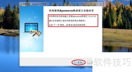 2、 双击运行录屏王程序,点击下一步开始安装。
