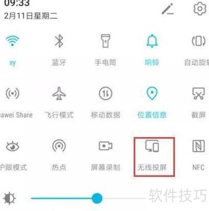 5、 请在手机中按图示开启无线投屏功能以完成设置。