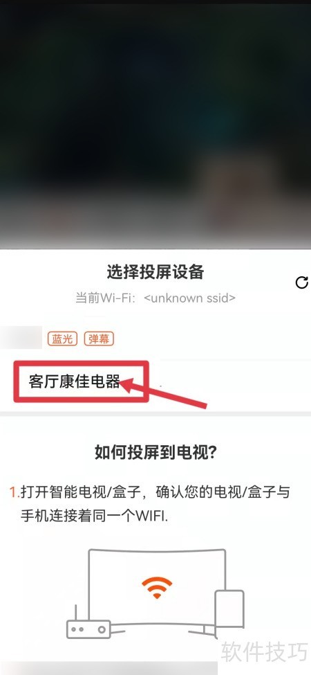 3、 第三步,在投屏设备列表中选择康佳电视,点击连接即可完成投屏操作。