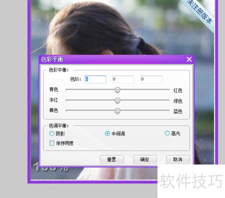 4、 调节色彩平衡设置参数。