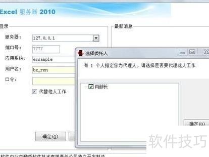 9、 任部长登录客户端时,请勾选登录窗口中的代替其他人工作选项。