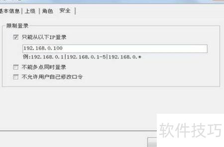 11、 在安全选项中,勾选仅允许指定IP地址登录,并在下方输入框中填写允许登录的IP地址,若需允许多个IP,使用|符号进行分隔。
