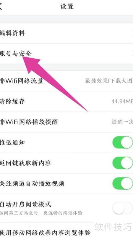 2、 进入设置,选择账号与安全。