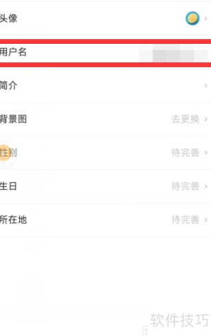 3、 进入编辑页面后,点击用户名选项。