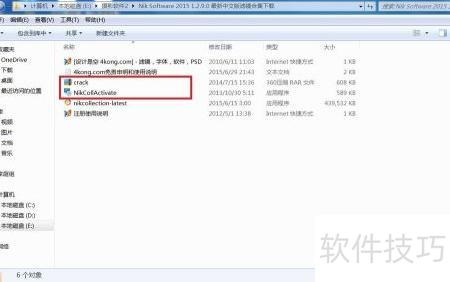 3、 进入该文件夹,找到名为crack的压缩包,右键点击并选择解压到当前文件夹,解压后会生成一个名为NikCollActivate的程序。此程序暂不运行,请先保留。待主程序安装完成后再使用它进行后续操作,目前无需处理。