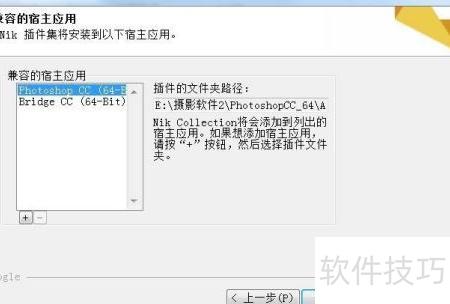 15、 此时会弹出一个对话框,需在其中逐步选择之前找到的Photoshop安装目录。例如,我的路径为:E:摄影软件2PhotoshopCC_64AdobePhotoshopCC_jjb_64Adobe Photoshop CC (64 Bit)。进入该目录后,继续找到并点击Plug-ins文件夹。请注意,必须准确选中此文件夹,成功选中后其背景将变为浅蓝色,以示确认。确认无误后,点击对话框右下角的确定按钮完成操作。这一步骤至关重要,确保后续功能正常运行。