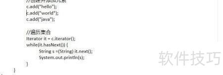 4、 集合遍历案例:使用迭代器逐一访问元素。