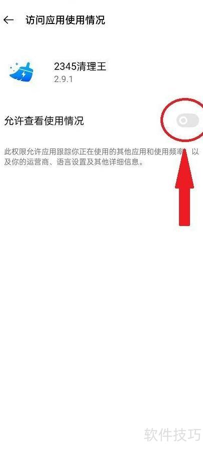 7、 进入应用使用情况页面,开启右侧允许查看使用情况开关,完成设置。