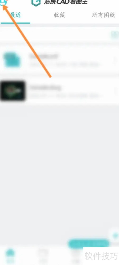 1、 打开手机CAD看图王应用,点击左上角头像图标进入操作。