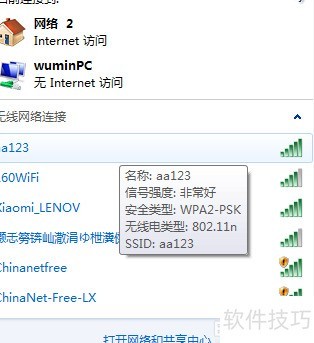 13、 发现无线网络wuminPC,输入密码wuminWiFi即可连接并共享上网。