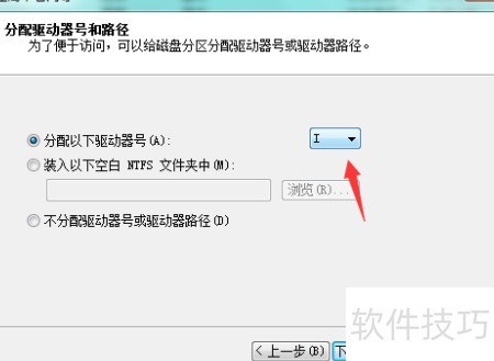 6、 选择磁盘驱动器字母,点击下一步即可。
