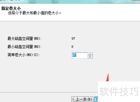 5、 设定新卷容量,点击下一步操作。