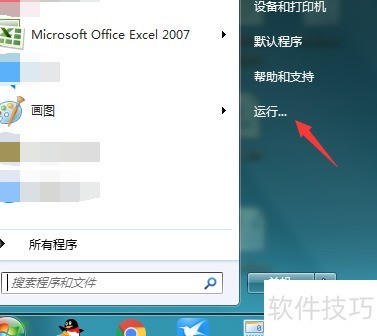 1、 点击开始菜单,选择运行选项。
