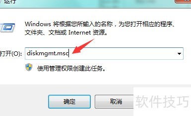 2、 在运行框中输入diskmgmt.msc并按回车键,操作所示。