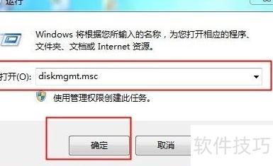 3、 点击开始菜单,选择运行,输入diskmgmt.msc即可打开磁盘管理工具。