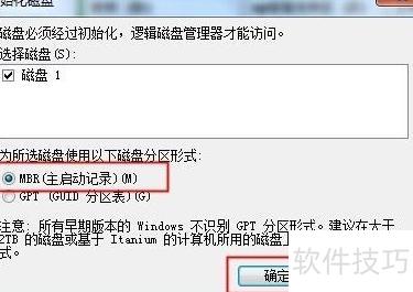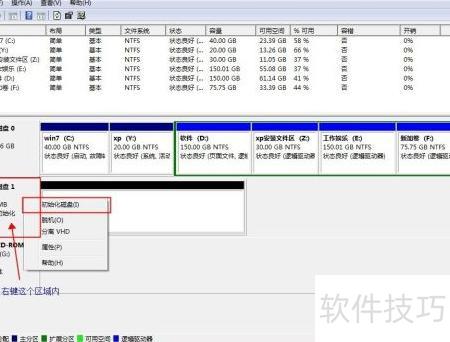 11、 右键点击新磁盘,选择初始化,在对话框中选MBR主启动记录后确认。