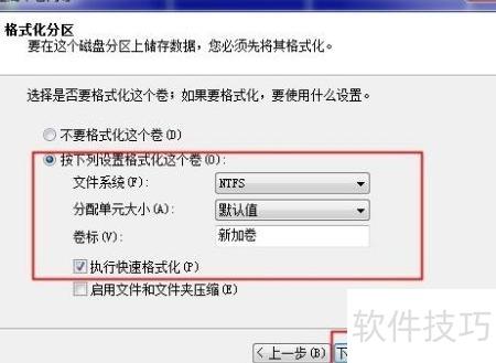 14、 在创建向导中设置分区大小,可划分多个区域,单一分区则占用全部空间。随后按常规步骤分配盘符、格式化,直至操作完成。
