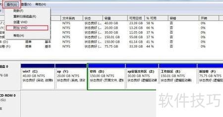 19、 打开磁盘管理,选择操作,附加虚拟硬盘