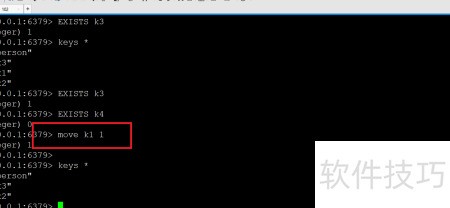 3、 使用move命令可将key移至其他数据库,原数据库中的key将被删除。