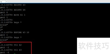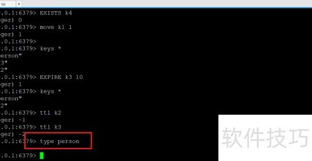 5、 通过ttl key可查看剩余过期时间,-1为永不过期,-2为已过期。