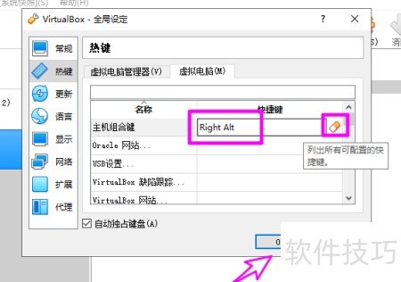 7、 点击后,选择右侧橡皮擦清除原有设置,随后自定义新按键。以键盘右侧ALT键为例,按下该键并将其设定为主机组合键,完成个性化配置,操作简便直观,提升使用效率与体验。