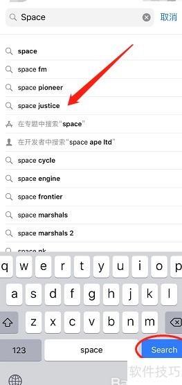 5、 进入搜索页面后,在输入框中键入Space Justice,随后点击搜索按钮即可。