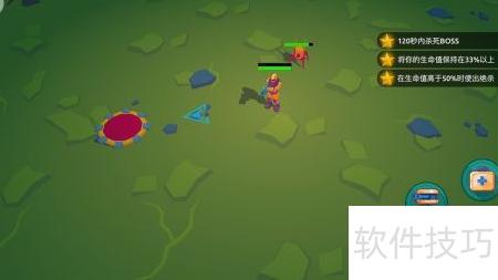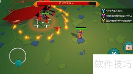 6、 战斗过程中,屏幕右上角会显示任务目标,但无需过多关注,系统会通过图标指引行动,操作十分便捷。角色头顶有两条状态条,绿色为生命值,红色则表示武器过热程度。持续攻击会使红条上升,一旦充满将进入冷却,无法继续输出。建议在红条接近满格前松开攻击键,以快速降低温度。完成任务后,只需抵达地图中标记的红色按钮位置,即可顺利退出当前关卡。