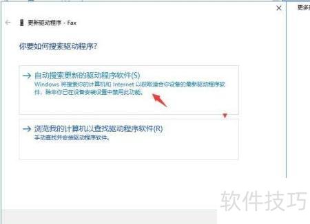 4、 在传真打印队列的下级菜单中,查找并选择自动搜索更新驱动程序功能。