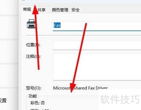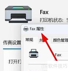 1、 在Windows 11中,打开FAX打印机的属性设置界面。