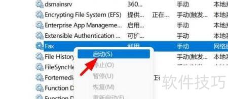 3、 右键点击此处,启动FAX服务即可。