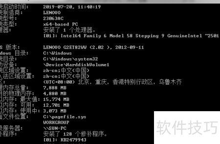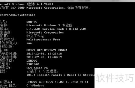 4、 在命令提示符中键入 systeminfo 并执行,查看系统...