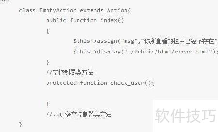 8、 空动作(_empty)与空控制器均是系统为防止URL异常所设置的机制。不同于空控制器用于匹配栏目,空动作主要用于定位具体页面。例如,当用户请求访问 http://localhost/index.php/index/user 时,若 Index 控制器中并未定义 user 方法,系统便会启用 _empty 动作进行处理。此时,只需在 Index 控制器中定义 _empty 方法,系统将自动将其作为默认响应动作来代替不存在的 user 动作,从而避免报错并返回相应内容,提升用户体验和程序容错能力。