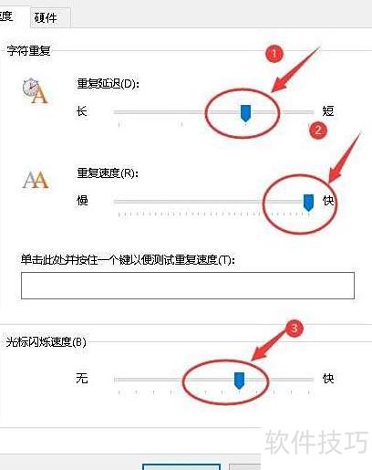 3、 调整键盘设置中的按键重复延迟、重复速率及光标闪烁频率。