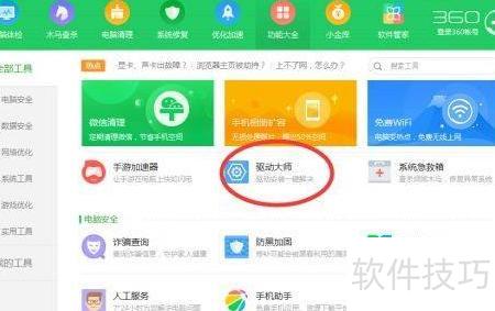 5、 若发现上述选项异常,可打开电脑中的360安全卫士,点击驱动大师进行检测与修复即可解决问题。