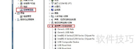 2、 进入设备管理器,展开通用串行总线控制器选项。