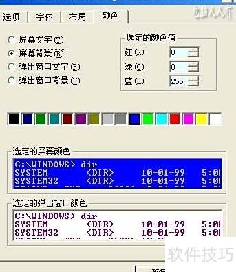 5、 属性菜单中的选项、字体、布局及颜色等设置与CMD完全相同。