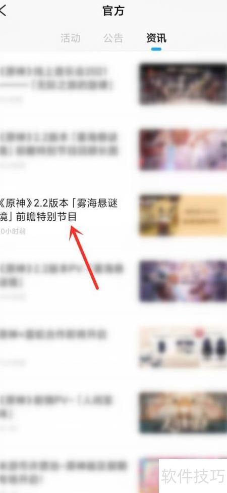 4、 进入资讯页面,选择原神2.2版本雾海悬谜境特别节目观看。