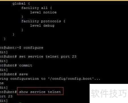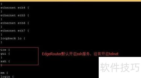 3、 查看路由器Telnet服务的配置情况,EdgeRouter设备出厂默认状态为禁用Telnet功能。