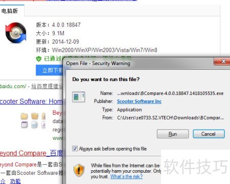 1、 在百度等搜索引擎中输入Beyong Compare进行搜索,以百度为例,进入搜索结果页面后,找到相关链接,点击立即下载按钮,即可开始下载该软件,操作简单便捷,适合快速获取所需安装文件。