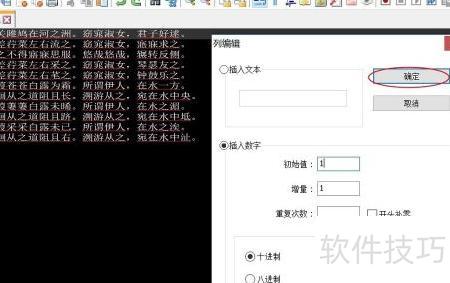 4、 可通过列块编辑功能快速插入数字与文本。例如在每行文本前添加递增行号时,先将光标置于首行行首,随后选择编辑菜单中的列块编辑选项即可操作。